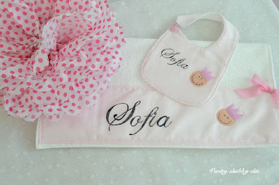 Un'asciugamani in spugna ed un bavaglino per una piccola principessa appena nata.